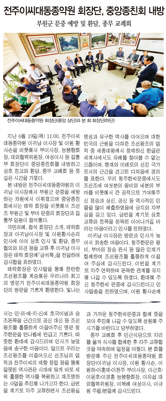 전주이씨대동종약원 회장단, 중앙종친회 내방