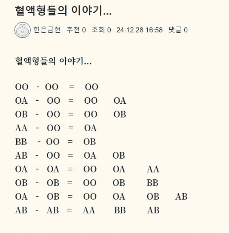 2574 혈액형이야기 나는 오우 5녀전하한은금현본인 2025-12-07 11