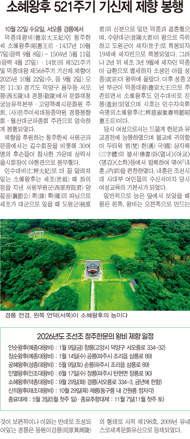 소혜왕후 521주기 기신제 제향 봉행