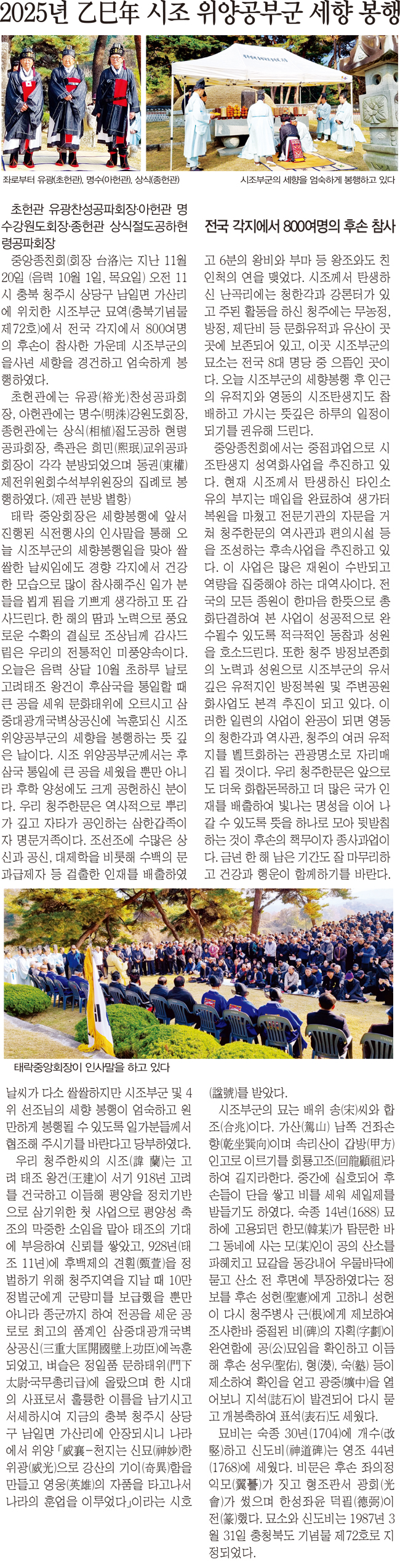 2025년 을사년 시조 위양공부군 세향 봉행